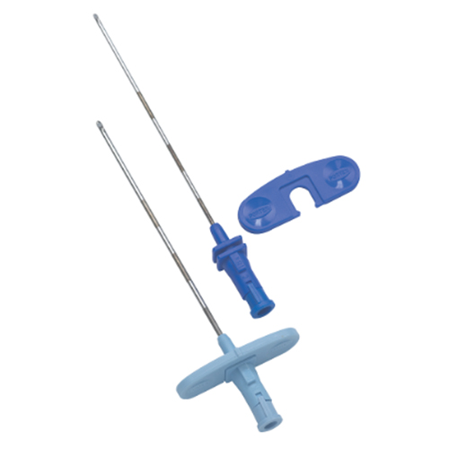 Aguja Tuohy con aleta desmontable y marcación de profundidad.