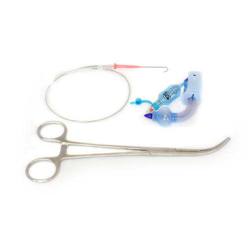 El Set con dilatador forcreps con guía/alambre produce la apertura deseada con un movimiento fluido. Al extender las mordazas de la pinza de dilatación para eliminar el alambre Guía, se aplica fuerza lateralmente a traves de la pared traqueal anterior. Set completo incluye la cánula Blue Line, con balón de volúmen alto y baja presión. En esta presentación la pinza Forcep es reutilizable (Unico componente con esta característica).