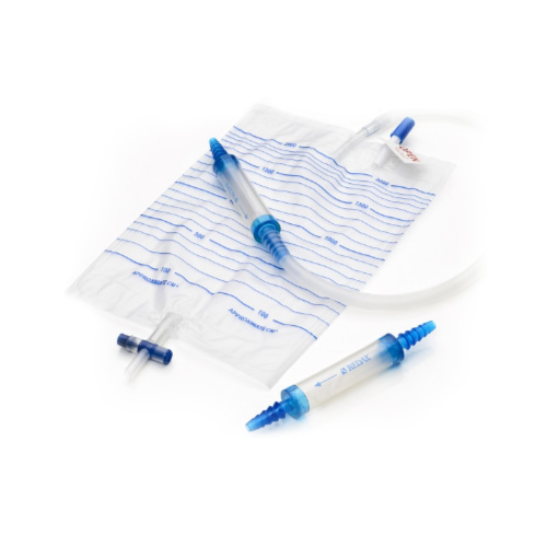 La válvula unidireccional, esta diseñada para evitar el reflujo de fluidos y aire al paciente. Disponible con y sin Bolsa de recolección preconectada (2000 ml.)